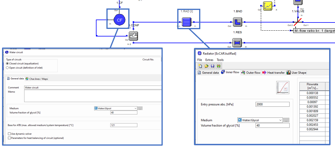 - A warning is shown if the medium in the circuit and the medium in the component are of different types (e.g. an oil vs. a coolant) because in this situation most likely something is wrong. This can occur if e.g. the inner and outer sides of a parallel flow cooler were placed in the wrong circuits.