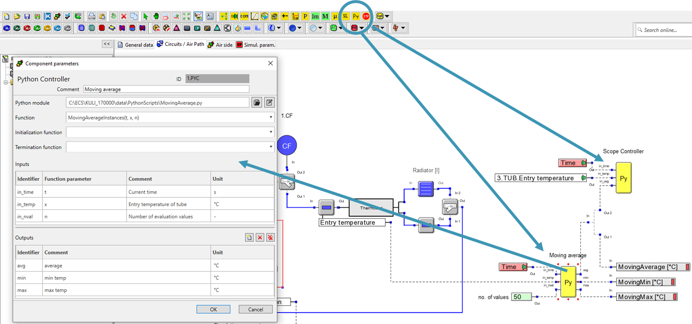The Python controller supports an arbitrary number of inputs and outputs, dedicated startup and termination functions can be specified to perform special tasks at the initialization of the simulation and after the simulation has been finished, docstrings are handled as tooltips, and much more.