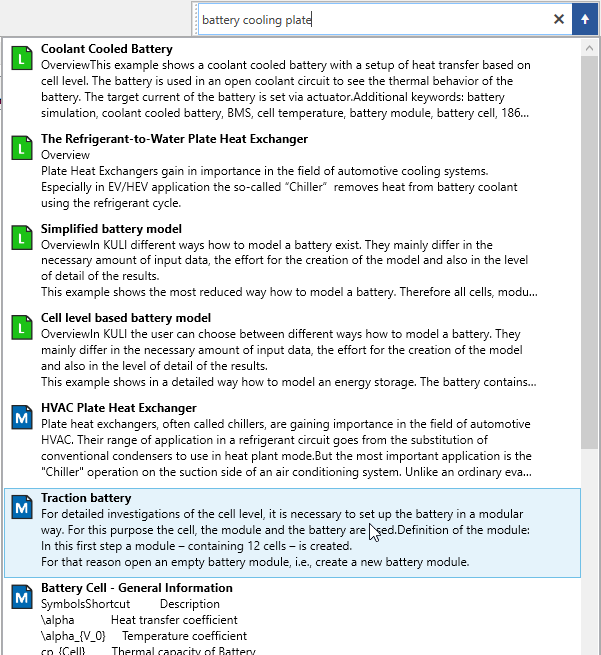 By entering a search string there you can quickly search in the KULI online manual, KULI online library, and KULI knowledge base. An overview of the search results is displayed with links to the relevant pages in the KULI online help.